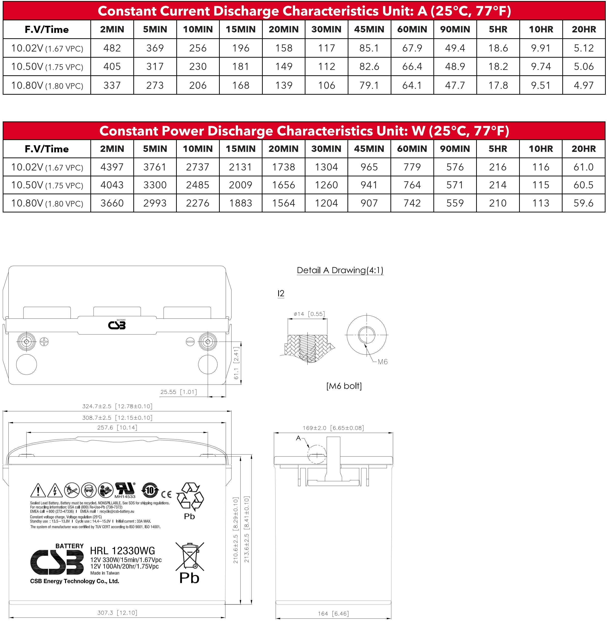 | Model Number | CSB HRL12330WG | Battery | 12V 330W |